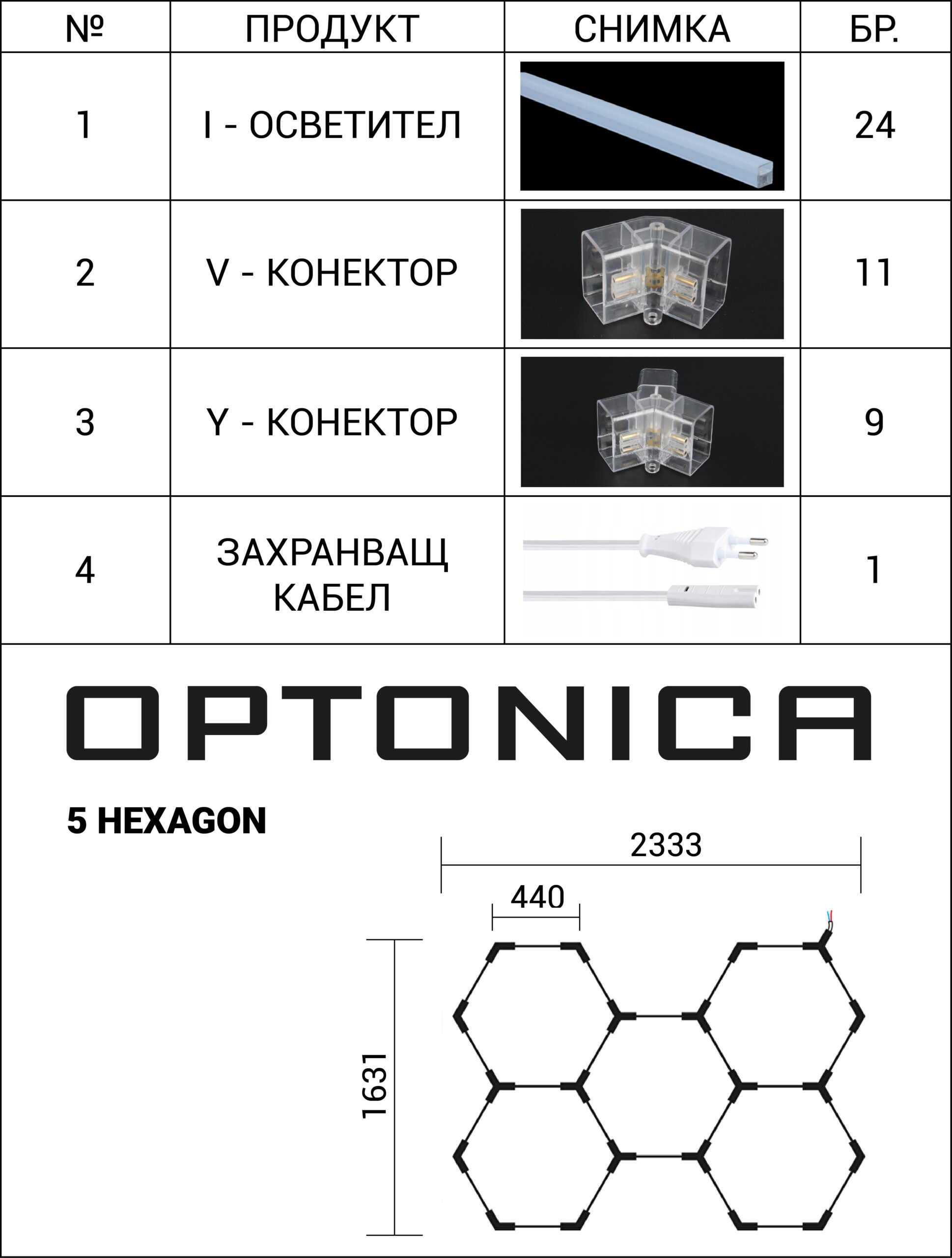 Hexagon Series Set 5*HEX 192W (Με αξεσουάρ εγκατάστασης) Ψυχρό Λευκό
