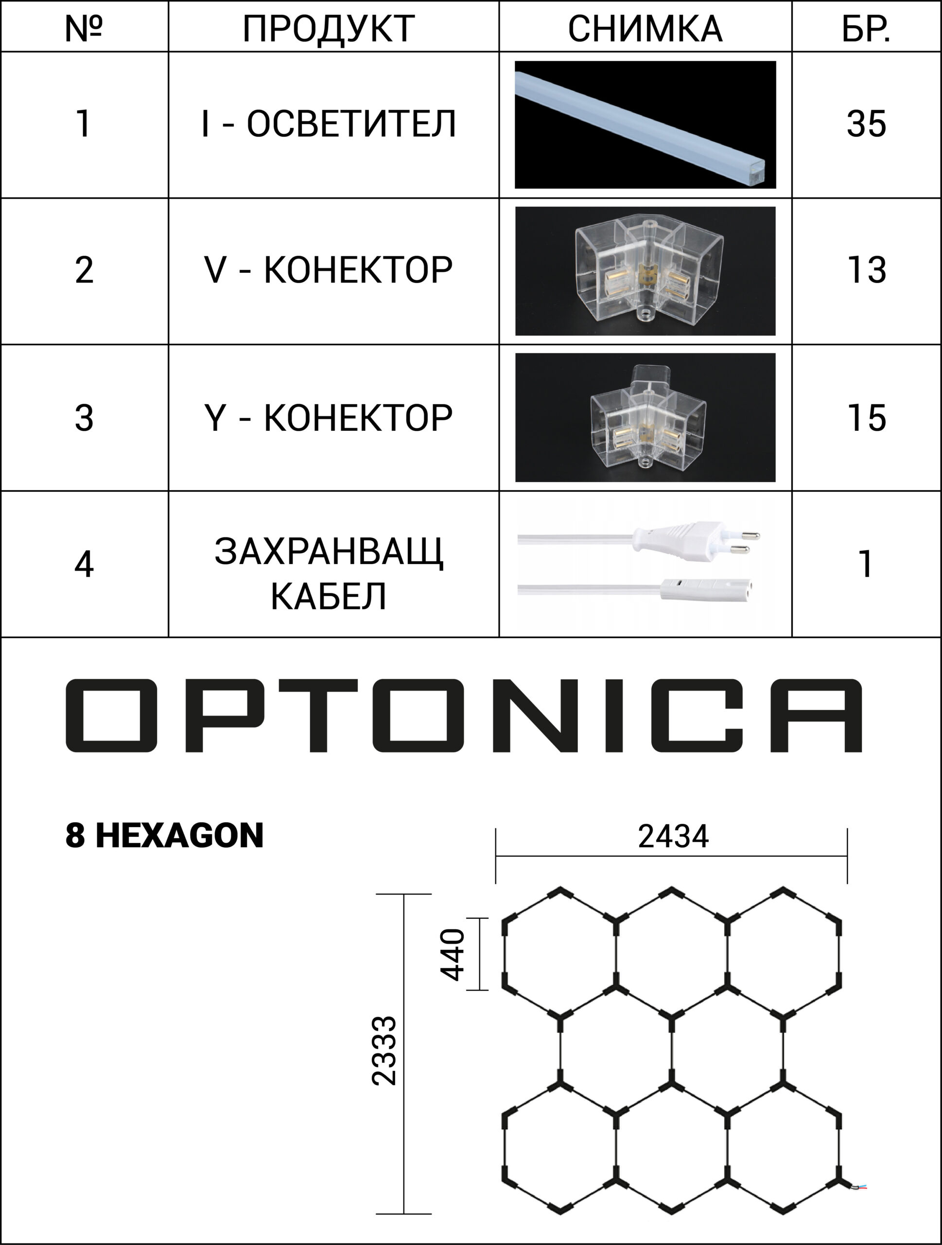 Hexagon Series Set 8*HEX 280W (Με αξεσουάρ εγκατάστασης) Ψυχρό Λευκό