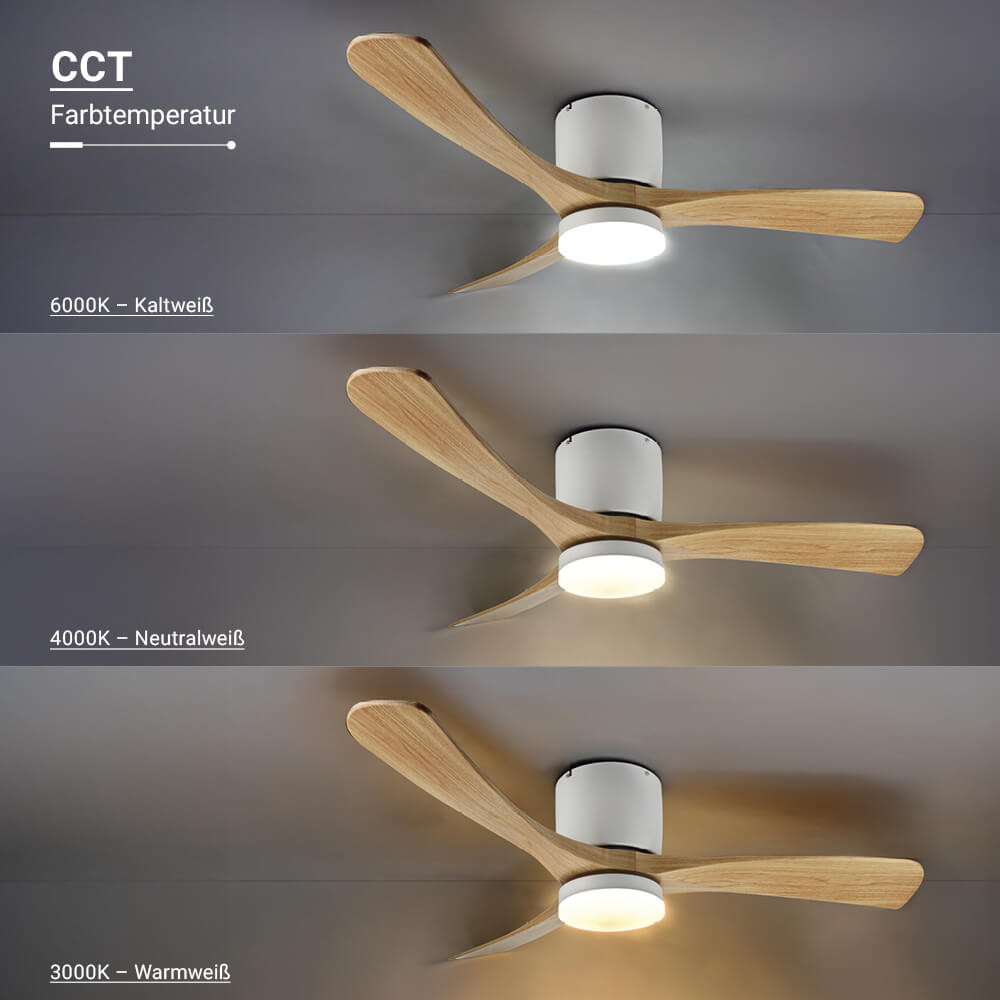 Led Ανεμιστήρας/ Φωτιστικό Οροφής Ασπρο+ Ανοιχτό Ξύλο 18W CCT + Τηλεχειρισμός